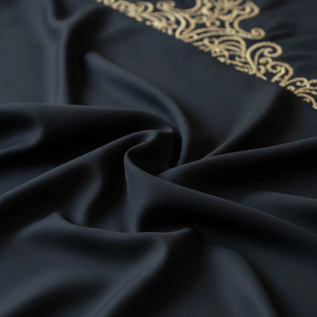 Satin is known for its smooth surface and natural shine, giving abayas a glamorous and refined look. The fabric reflects light beautifully, making even simple designs feel luxurious and eye-catching. Satin drapes well and creates a flowing silhouette, which is why it’s often chosen for evening and special-occasion abayas. However, because of its glossy finish, satin requires careful wear and maintenance to keep it looking polished.