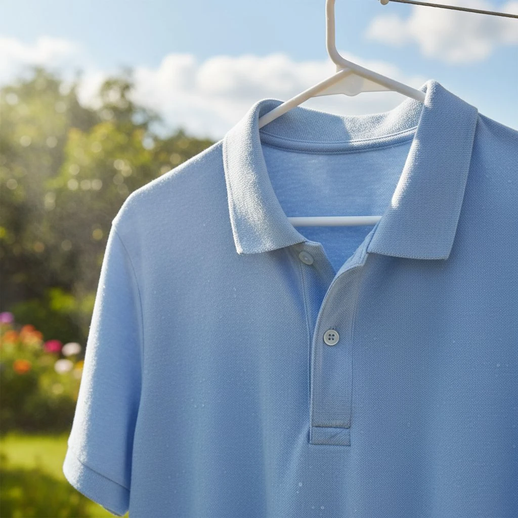 Air-drying is the safest way to keep polos in good shape. How to air-dry correctly: