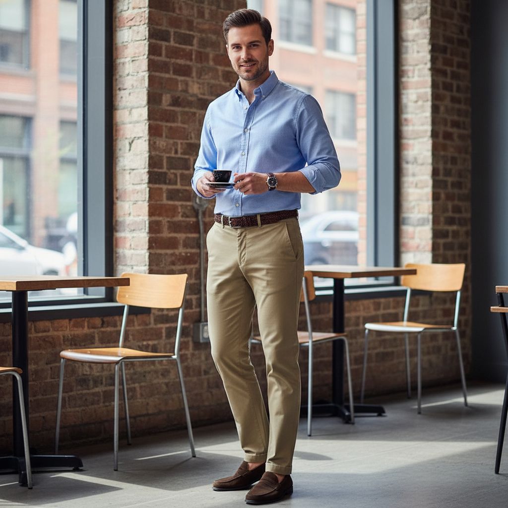 - Darker-toned khaki chinos (richer shade)