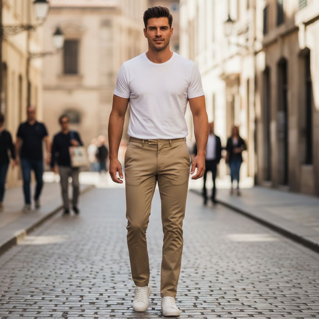 Khakis are one of those “easy” items that people mess up all the time. Why? Because khakis are neutral, and neutral clothes show every fit mistake. If your pants are too baggy, too long, or too stiff, khakis will highlight it fast. The good news: once you get the fit, shirt choice, and shoes right, khakis can look clean, modern, and expensive, without trying too hard.