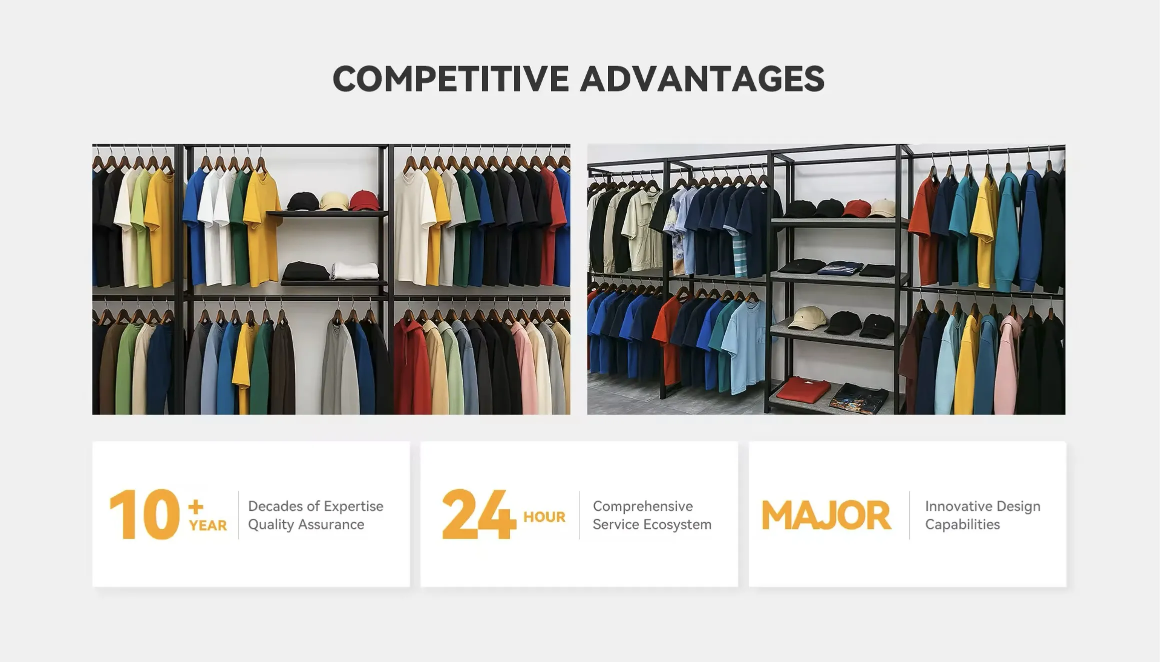 For more than a decade, we’ve been producing high-quality clothing for brands around the world. Our years of experience mean we understand every detail — from picking the right fabrics to managing production schedules and perfecting the final stitch. This expertise helps us deliver products that not only look great but last longer, giving your customers better value and keeping them coming back for more. What it means for you: