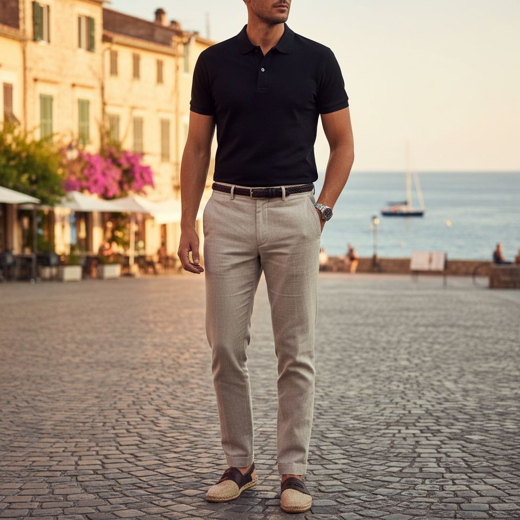 - 2. Black Polo + Khaki Chinos: A strong smart-casual combination that feels modern and masculine.