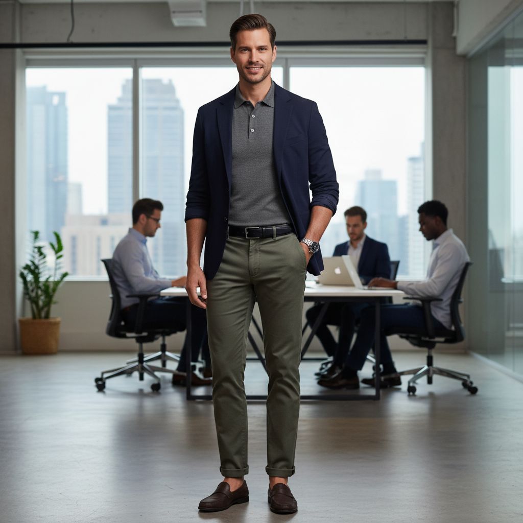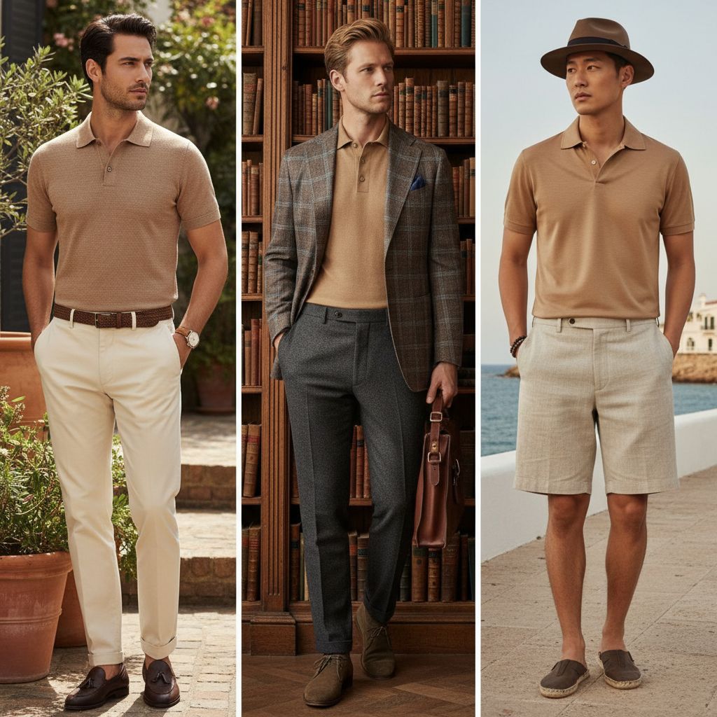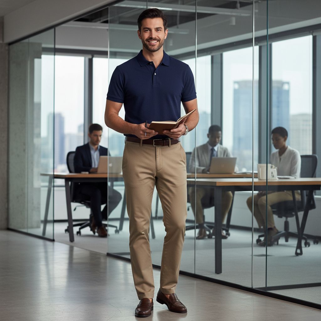 - 5. Light Brown Polo + Beige Chinos: Warm, soft, and refined for relaxed office days or casual meetings.