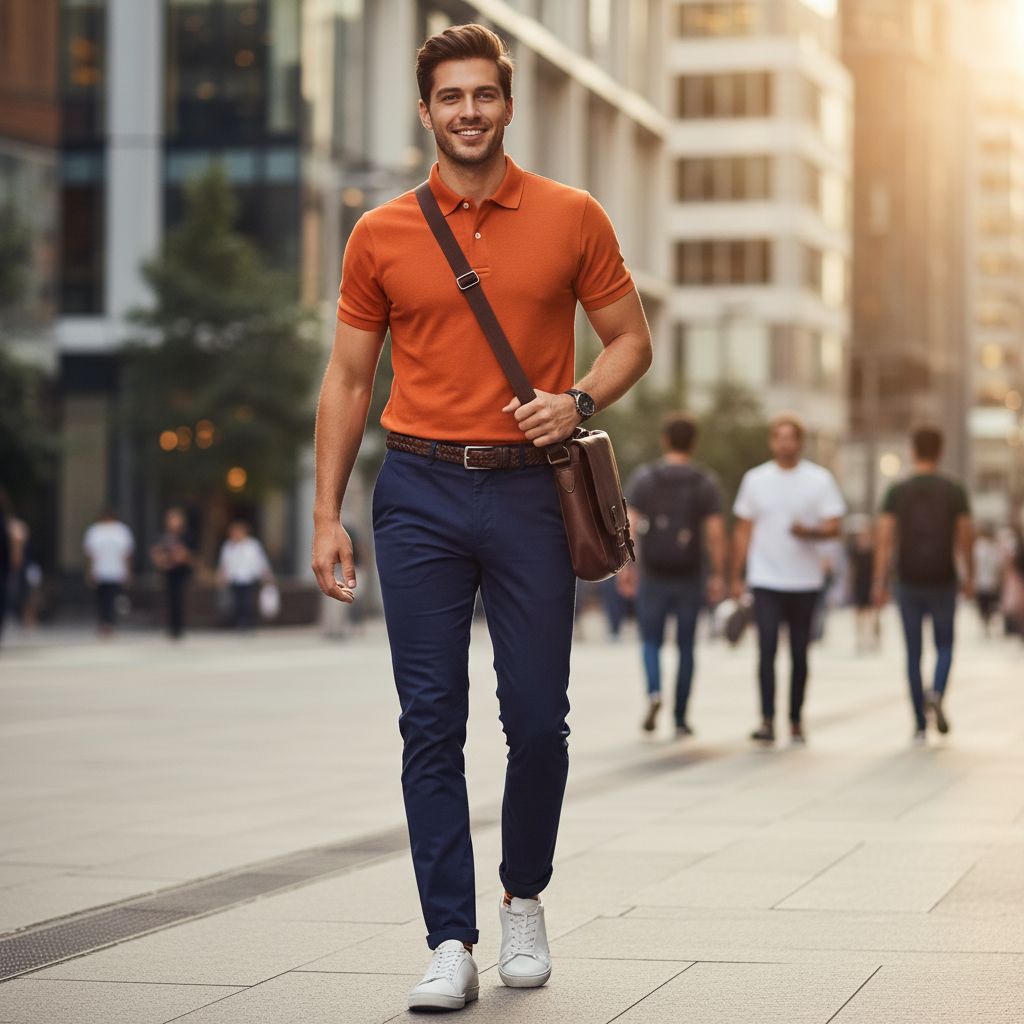 - 6. Orange Polo + Black Pants: Confident and energetic, best for casual outings or creative work settings.