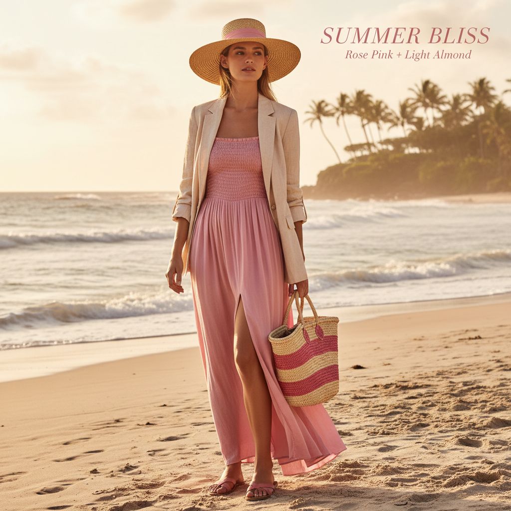 For a softer and more romantic summer mood, rose pink and light almond is a beautiful choice. Rose pink feels gentle, warm, and feminine. Light almond adds a creamy, elegant base that keeps the look refined.