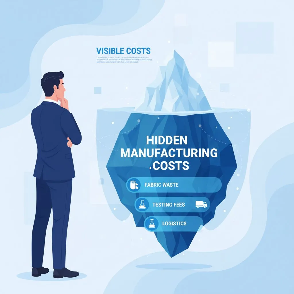 Hidden costs are expenses outside the factory’s quoted unit price that together form your true landed cost. They include pre-production development (patterns, grading, sampling), lab testing and certification, extra fabric waste, trim MOQs and leftover inventory, third‑party inspections and rework, and logistics surcharges, duties and port fees. These items often arrive after the quote because the quote covered only manufacturing, not the full scope needed to ship compliant, finished product to your market.