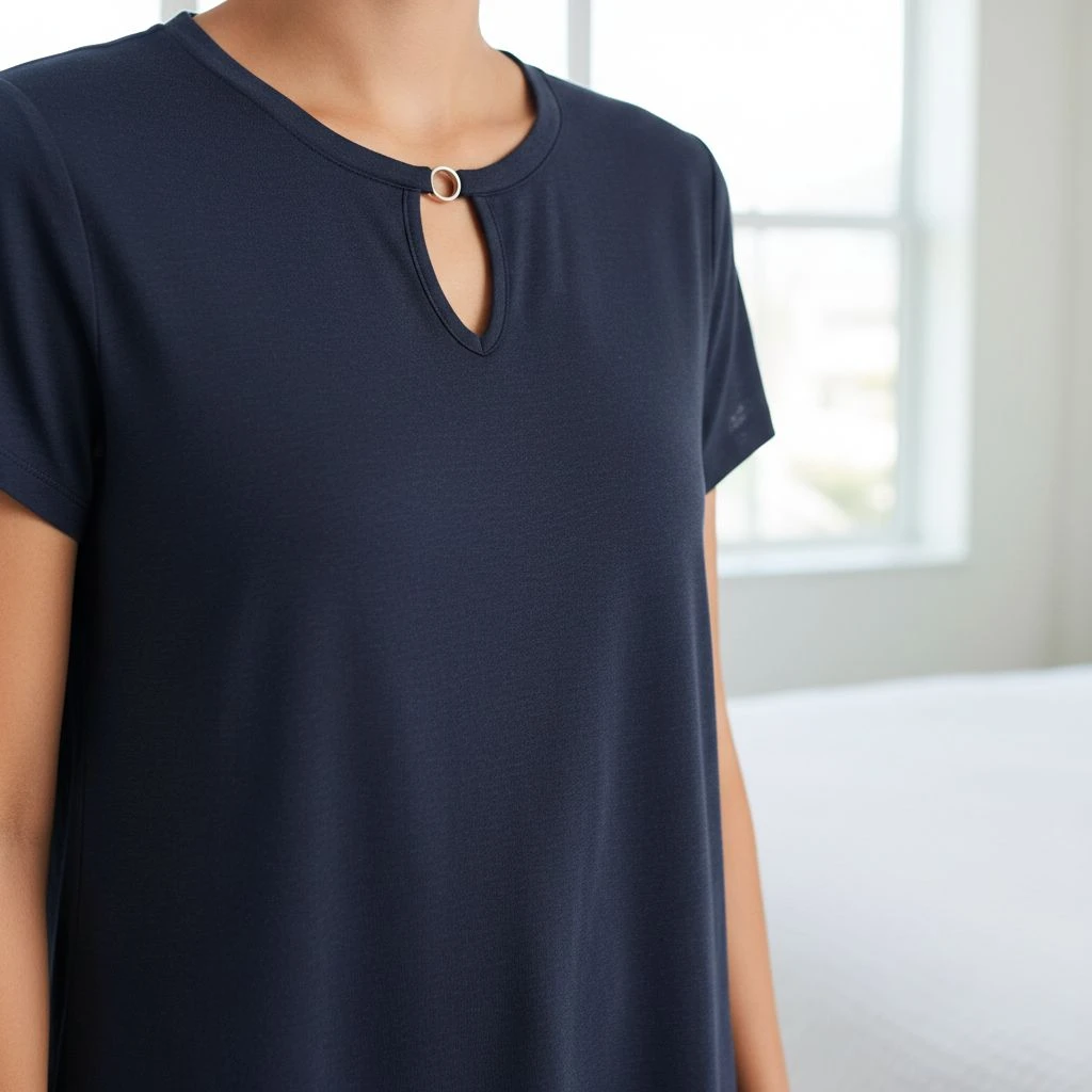 Why it’s difficult – Keyhole necklines require precise circular control on stretch fabric.